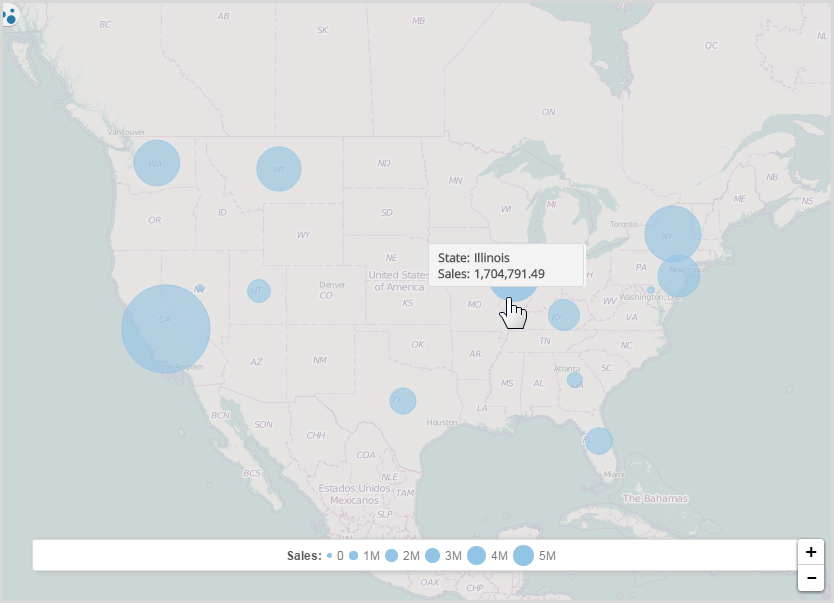- Bubble: displays circles sized by measure