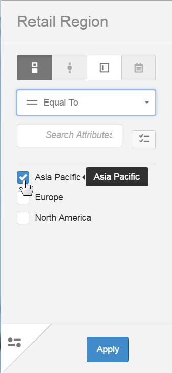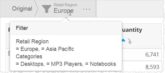 The filters that have been applied in the filter drill path are at the top. Hover to see the filters applied, and click on a node to go to a previous state.