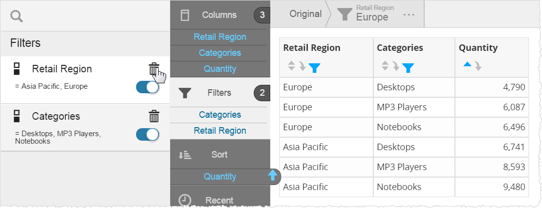 To switch a filter Off or delete it altogether, click Filters on the left panel in the Chart Builder.