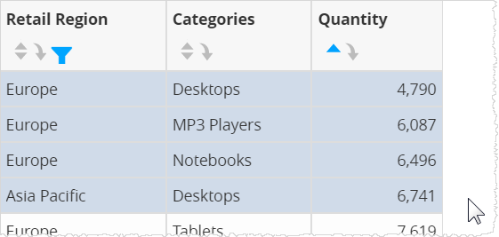 To change the filter, click the Filter icon in the column header and then drag-select a set of rows to instantly filter a table.