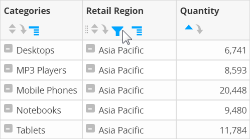 icon in the column header and select