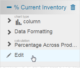 - In addition, Visualizer updates the item in Chart Builder to show that it is a percentage across calculation, as indicated by percentage sign (%) before the measure name (for example, %Current Inventory).