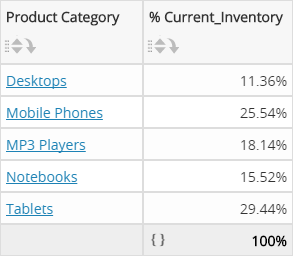 ([Inventory_Date: Sum: Current_Inventory]/[Inventory_Date: Sum: Current_Inventory]{[Products.Total]}) * 100 - Click .