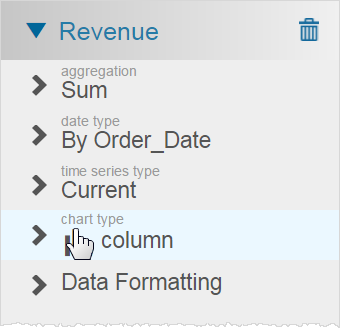 - Under Measures, add a measure to Chart Builder and select it. Visualizer shows the options available for the measure.
