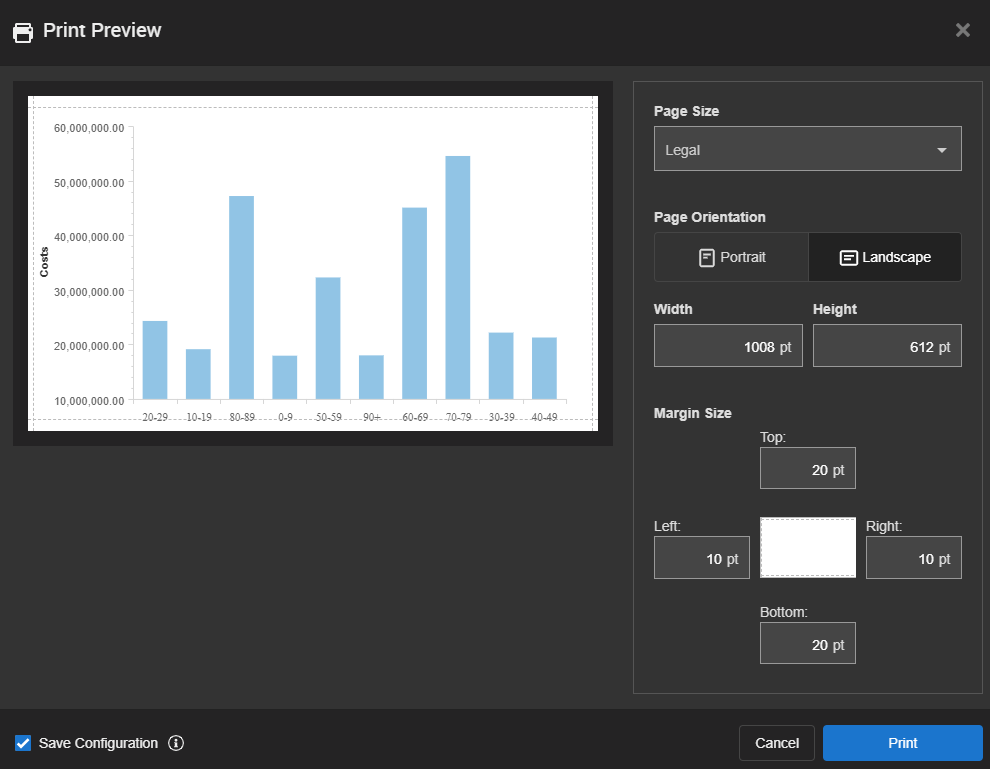 After saving, you can use the Print option to configure the print settings of your report.