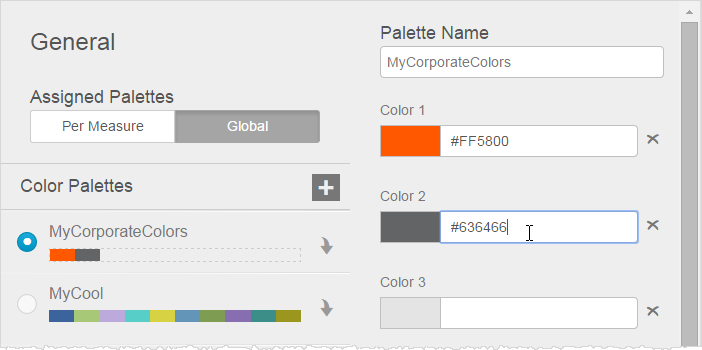 - For the Assigned Palettes field, click either Per Measure or Global, depending on the scope of the changes.