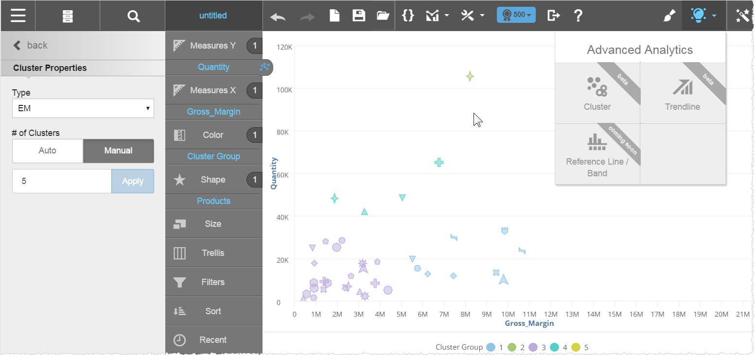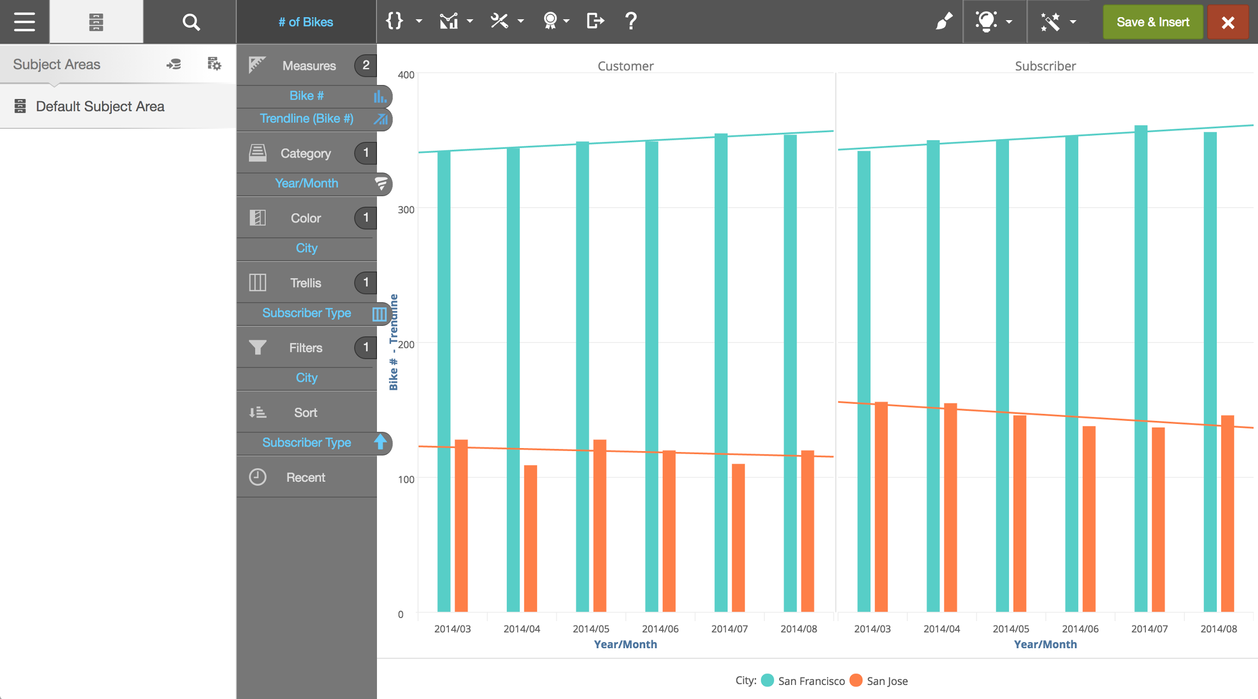 Trendline identifies an increasing or decreasing trend in the data set. You can add an attribute to a Color, Shape or Trellis in Chart Builder for a report containing a trendline.