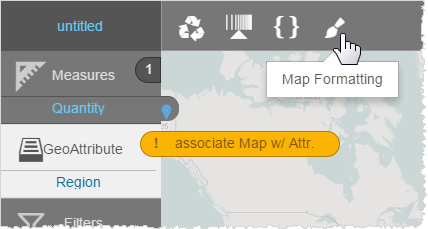 - Create a report of type Geomap and add a measure and attribute. For example, Quantity by Region.
