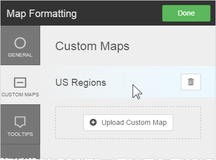 Note: If there is no map associated with the attribute, Visualizer displays a warning message. This message disappears when you upload the KML file and associate the custom map with the attribute.