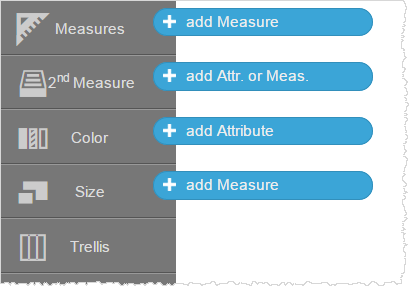 The Chart Builder shows only the sections that are applicable to the chart type. The sections that display (such as Color and Size) differ depending on the chart type you select. - Add measures and attributes and save the report as described in the previous section.