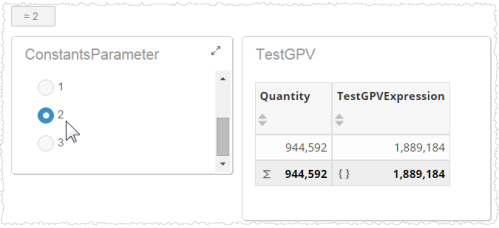 For example, in Dashboards 2.0 create a parameter filter called ConstantsParameter with the radio button values 1,2,3. Then create a KPI with the following expression:
