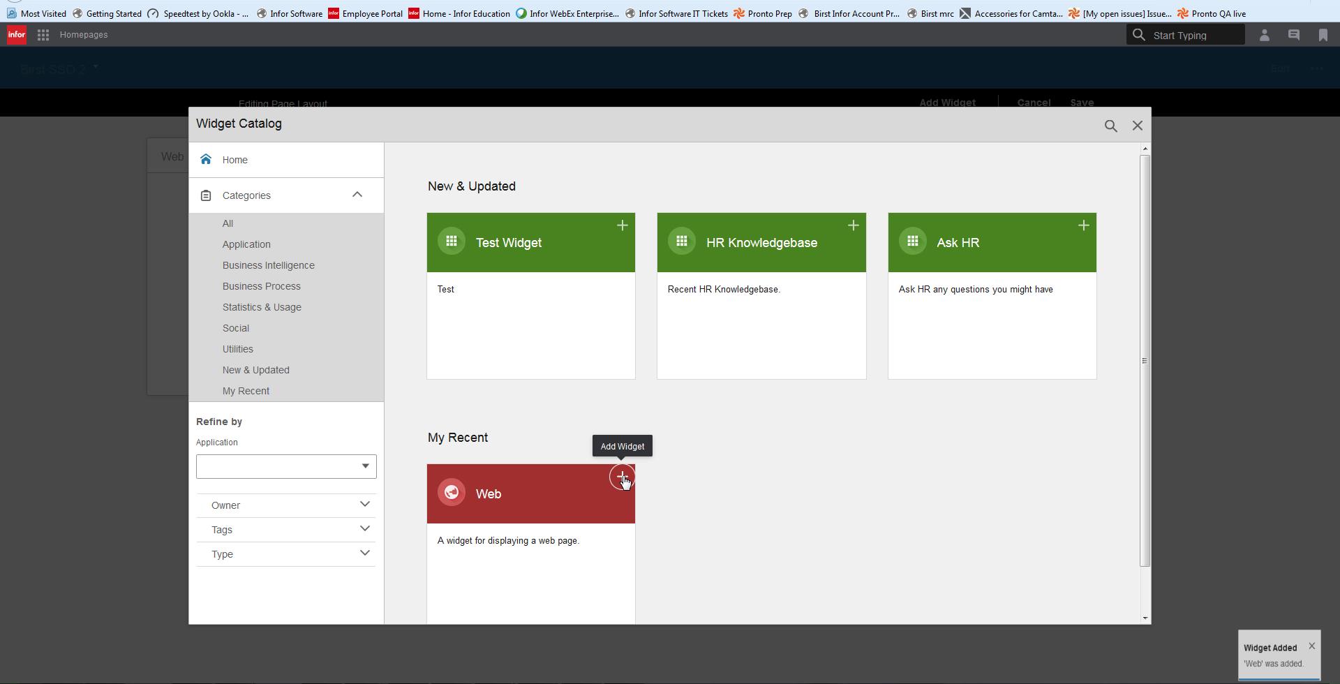 Embed Visualizer Reports in Infor Ming.le using a Web Page Widget