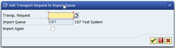 - Place the cursor on the transport name and click import request. (The names in the screenshot may be different.)
