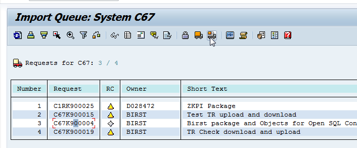 - Transports C67K900037 and C67K900041 must be imported in sequence. C67K900041 is an update to C67K900037. If you already have C67K900037 then import C67K900041.
