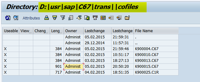 - Double-click on the cofiles row to show the directory. For example: D:\usr\sap\C67\trans\cofiles.