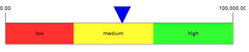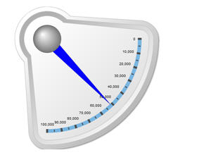 A chart that displays a single value in the form of a gauge. It requires one series and a set of thresholds.