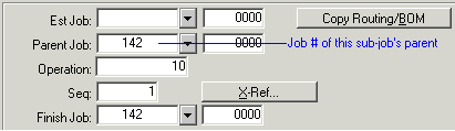 El sistema crea un subtrabajo para los materiales de subensamblaje actuales dentro de la BOM que tengan una Referencia de Trabajo (el campo Referencia en el formulario Materiales actuales). Los subtrabajos generados utilizarán el número de trabajo del trabajo principal + un número de Sufijo de trabajo incrementado. Por ejemplo, si el trabajo principal 142 tiene dos subtrabajos, los subtrabajos se enumerarán 142-0001 y 142-0002.