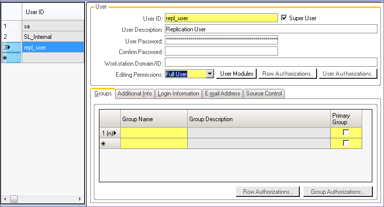 Create a user account that will be used during replication between the sites. Assign this user the appropriate permissions to allow replication data to complete the transaction. This protects the local site from another site inappropriately adding or modifying data on the local site without permission.