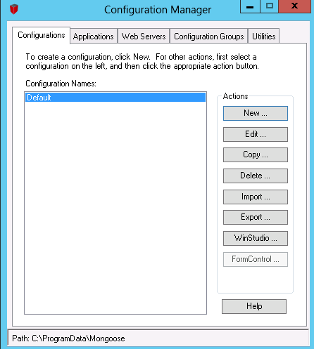 If you have multiple application servers, only one of them should be designated as the configuration server, and the Configuration Manager utility should be run only on that configuration server. The resulting MongooseConfigs.xml file should then be copied to the other servers so they have access to the defined configurations. See the Infor SyteLine Multi-Site Planning Guide for information about the configuration server.