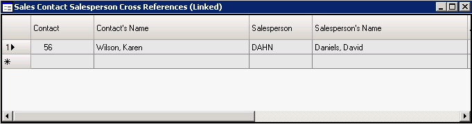 The salesperson is added to the Salesperson Cross-Reference for that contact.
