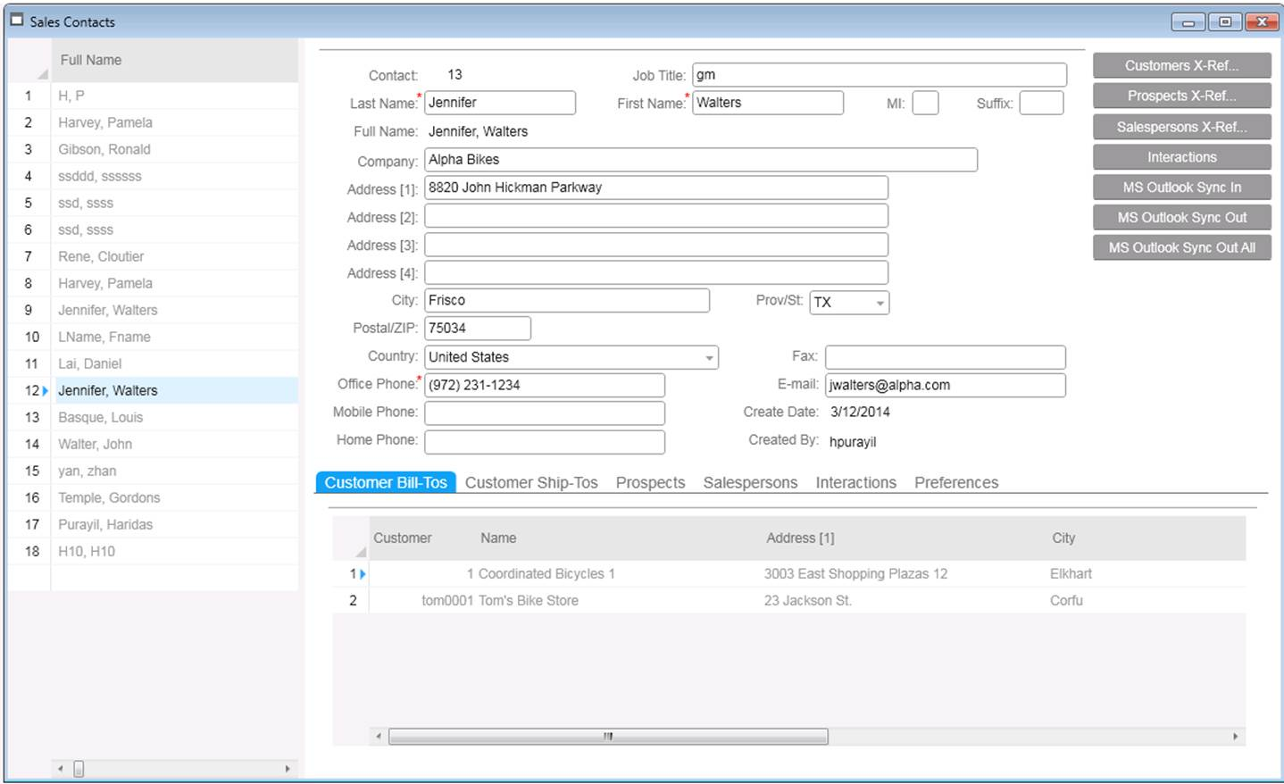 - You can optionally click the Contact X-Ref button to associate a SyteLine salesperson, customer, and prospect with this contact.