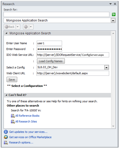 SyteLine data can be searched only by authorized SyteLine users. You must set up a valid SyteLine user name and password.