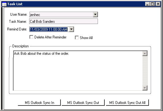 If you want the task to be automatically deleted from SyteLine after the reminder has been sent, select Delete After Reminder. The task will not be deleted from Outlook.