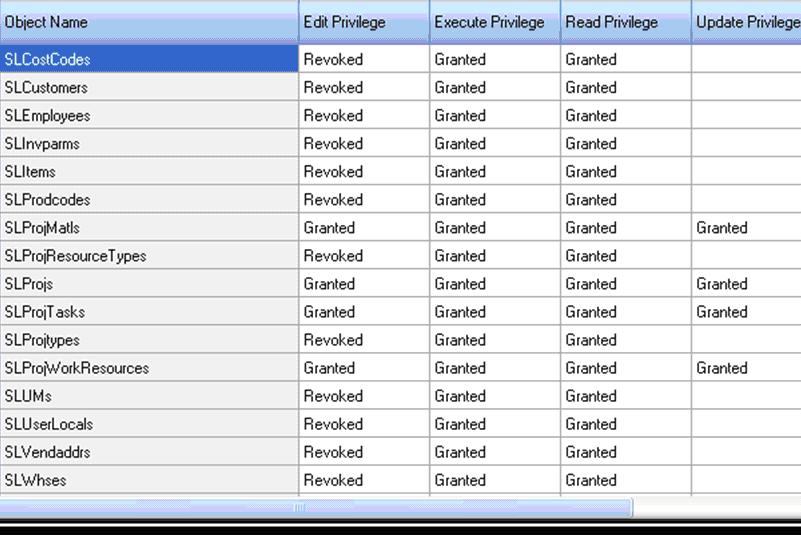 - SyteLine user must have the following permissions set for object type MIDDLEWARE: