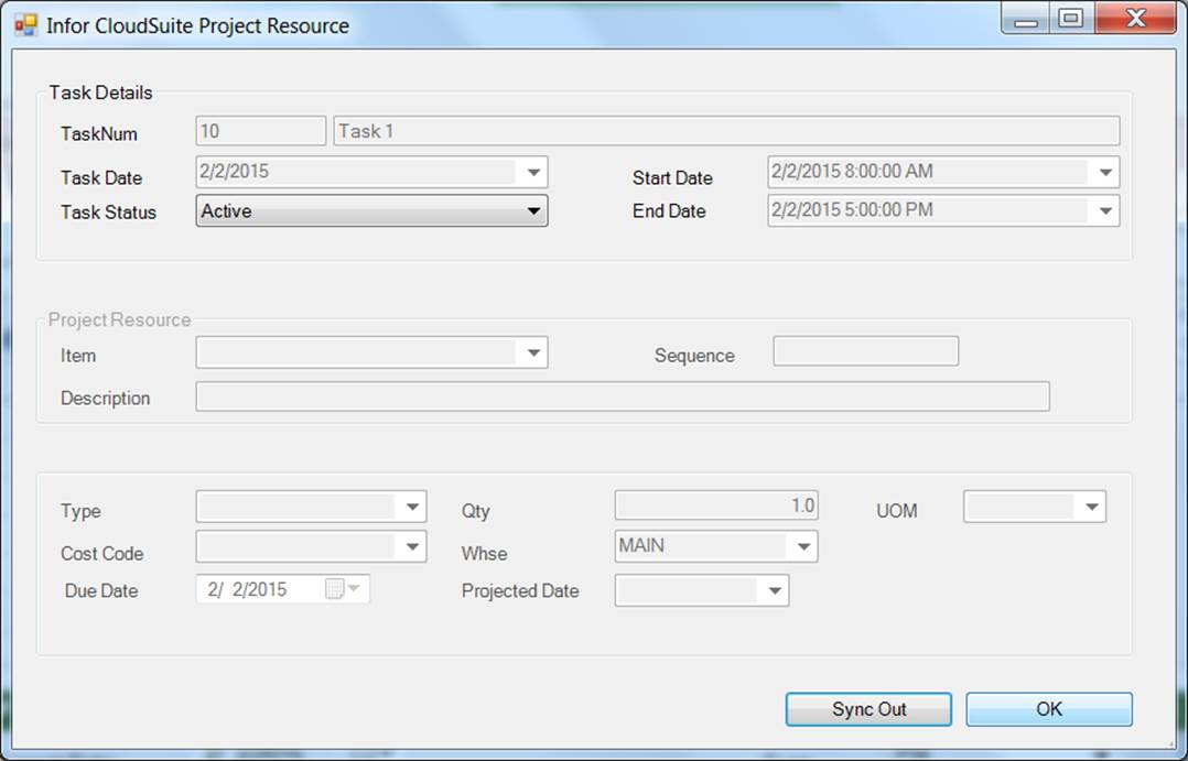A task is created/updated in SyteLine when you perform the Sync Out process from the menu or when you click Assign SyteLine Resource.