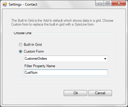 In an on-premises environment, SyteLine users must be assigned the SyteLineOfficeIntegration license to replace a data-grid with a custom SyteLine form, or Infor SyteLine users must be assigned the OfficeIntegration license. Infor SyteLineusers in a cloud environment do not require a specific license to do this.