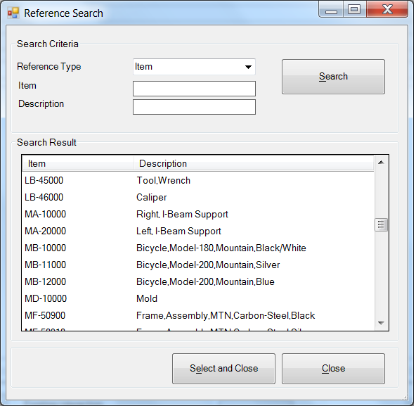 - Enter the appropriate search criteria then click to show the result. You can change the reference type from this window if you wish.