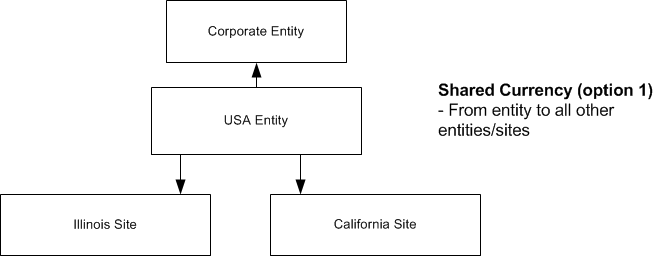 - If currency and rate maintenance is performed only at the entity, you should replicate the Shared Currency from the entity down to the reporting sites. You do not need to replicate the Shared Currency category up from the sites to the entity. You must then disable the ability to change Currency Rates at the sites, in order to maintain control over the data. This flow chart shows an example of this option: