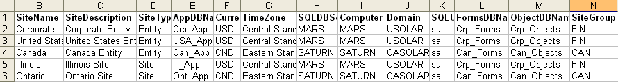 Update your SiteEntity spreadsheet to specify which site group each site should initially belong to. An initial group is required when you configure the site.