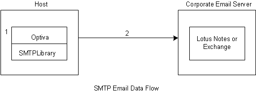 Because SMTP is a standard, it is widely available. Most application developers do not have to implement it; they purchase an implementation from a third party vendor. Infor has integrated SMTP support into Optiva in this manner. Optiva includes a library that contains functions that format SMTP messages. These messages are sent to an email server for transmission to users’ in-boxes.