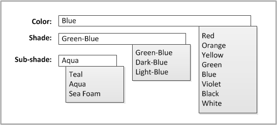 values for the C_SHADE and C_SUBSHADE enumerated lists are filtered according to the choice in the field