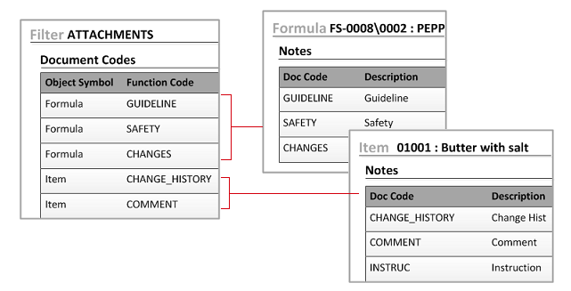 Assigning the filter to a document function code After you create a document function code, assign a filter to text attachments. Open the Filter form. Specify the Header, Labs, and security for the filter. Specify the document codes for the attached files or URLs only. Do not add embedded image codes. The INSTRUC code is not required for the formula and item filters. INSTRUC is not displayed in the Notes tab for the formula. The code is displayed in the Notes tab for the item.