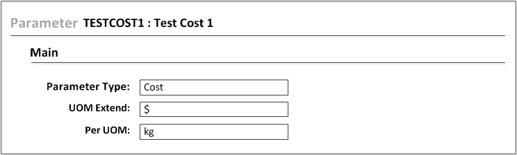 TESTCOST1parameter has:- A base unit of measure of US Dollar. This is defined in the UOM Extend column.