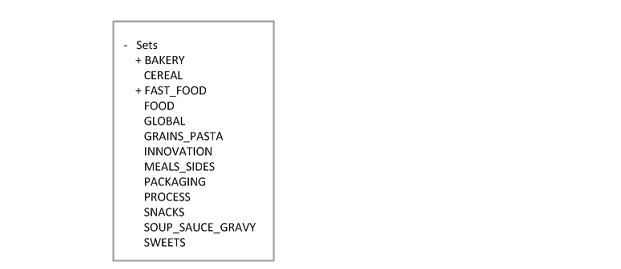 You can assign an object to the set code for another lab. For example, you are in the FOOD lab. You can assign objects to BEVERAGE or TEST. Objects that are assigned to sets are available to all users in any lab through the Sets category of the lookup.