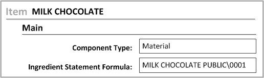 - Add that formula to the Milk Chocolate item. The Component Type must be either Material (1) or Raw Material (8).