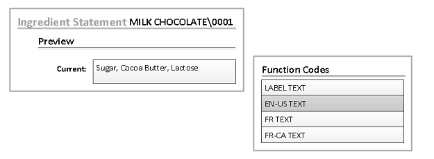 In this example, the English text for the child ingredient statement is stored with the EN-US TEXT function code.