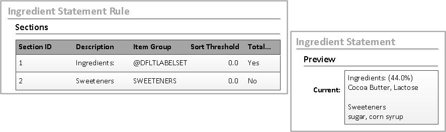 You can have more than one section title in an ingredient statement. For example, you can configure a sweeteners section with the title "SWEETENERS".