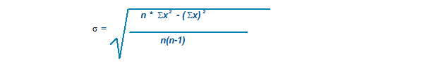 This is the standard deviation for the sample population. This value is used as input to calculate the Risk Factor. The standard deviation is calculated as follows where n = sample size, and x are the individual parameter values.