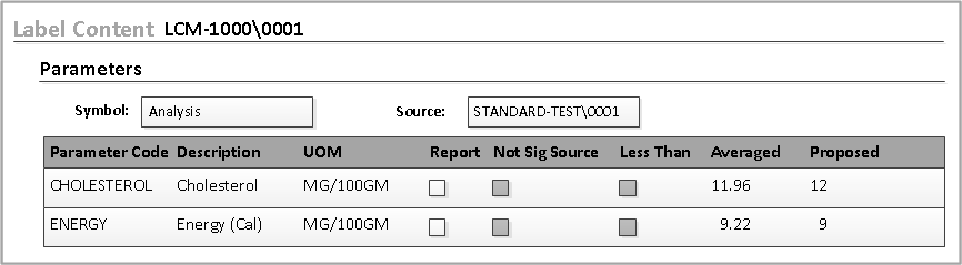 The label content object is a container for label information that is used on product labels. The values for the label come from the results row tags of the analysis object.