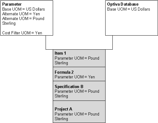 You can configure alternate units of measure for each parameter in the Parameter form. Then, you can select those alternate units of measure in these objects: Item, Formula, Specification, Project, and Compare.