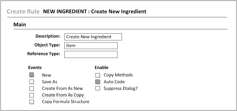 - Open the Create Rule form. Enable the Create Rule events and prompts for templates.