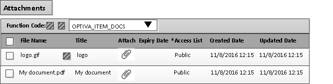 When users select an IDM Document Type from the Function Code list in the Attachments grid, the column headings for that Document Type are displayed. After Optiva users complete the required fields and add their attachments, the attachments are uploaded to IDM. A RESTAPI call is made to initiate the upload to IDM.