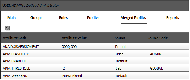The Merged Profiles tab in the User form is a read-only grid. To make any changes to this tab, you must edit the Profile form, the Lab form, or the Profiles tab in the User form.