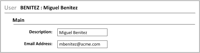 Optiva uses the email addresses that are configured on the User form to perform external email notifications. You can designate an individual’s email address or a distribution list for the email address.