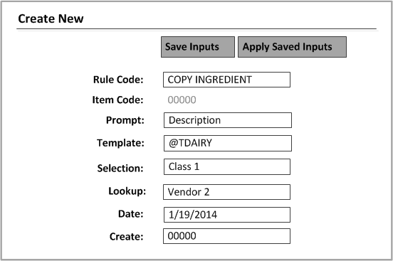 The Create Object dialog enables users to save their input. They can reapply the input the next time that they create an object. These segments can be saved: