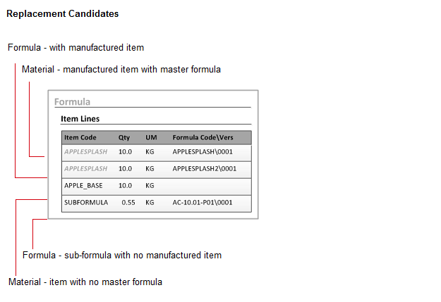 Replacing materials and formulas You can replace materials with materials, materials with formulas, and formulas with materials.